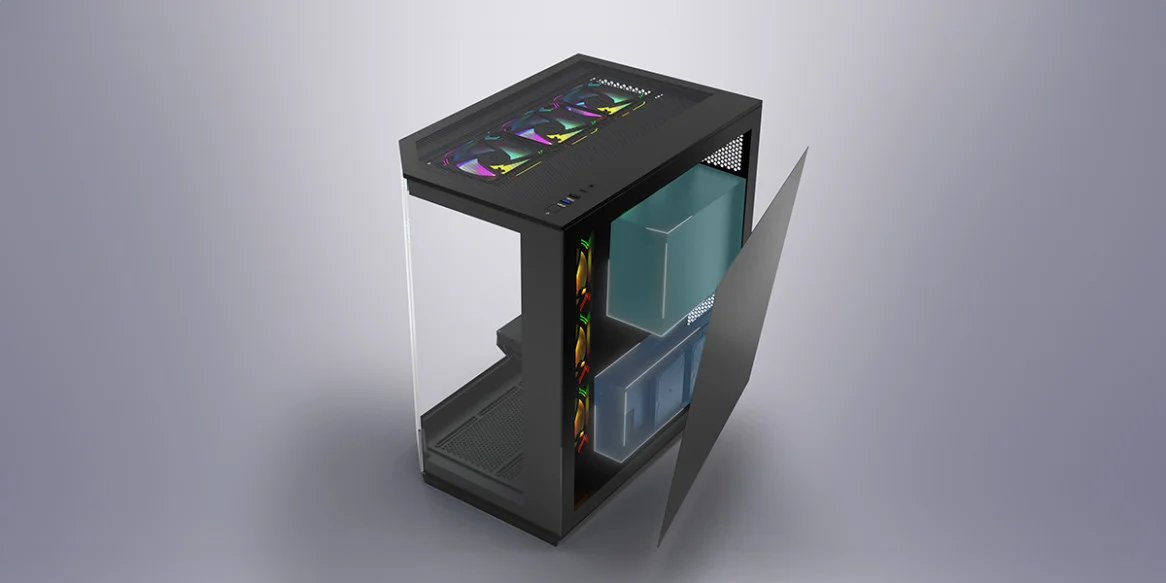 Warcry EDGE oyun bilgisayarı kasası, anakart tepsisinin arkasındaki geniş alanıyla kablo yönetimine öncelik verir. Gizli kablo yönlendirmesine olanak tanır, iç estetiği iyileştirir ve hava akışını optimize eder.